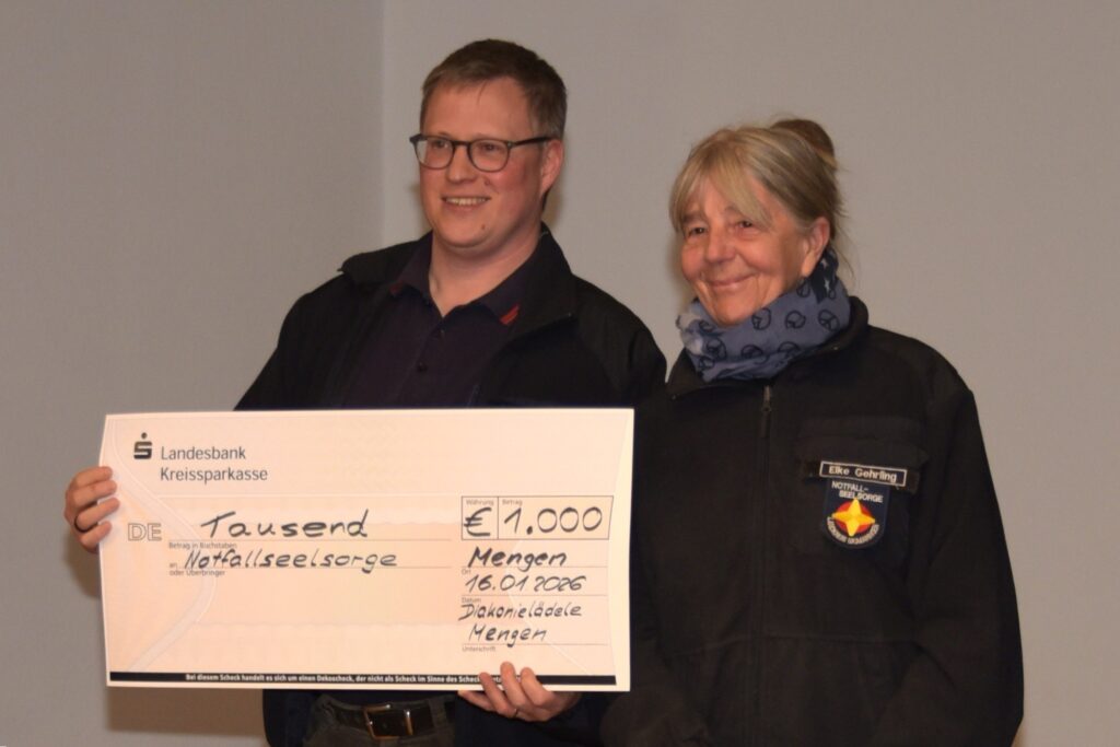 Schon seit mehreren Jahren unterstützt das Diakonielädele Mengen regelmäßig die Notfallseelsorge im Landkreis Sigmaringen. Bei der Spendenübergabe am 16.01.2026 wurde die Notfallseelsorge Sigmaringen mit einer Spende in Höhe von 1.000 Euro bedacht. Die Spende kommt der Arbeit der Notfallseelsorge zugute, die Menschen in akuten Krisen- und Notsituationen begleitet und ihnen … - SbE Übungstag